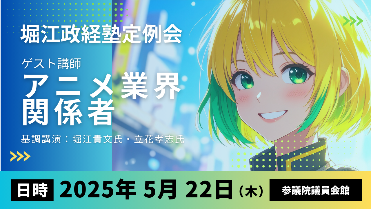 堀江政経塾は、政治団体ホリエモン新党が堀江貴文氏はじめ様々な著名人等を講師として招き展開する勉強会です。