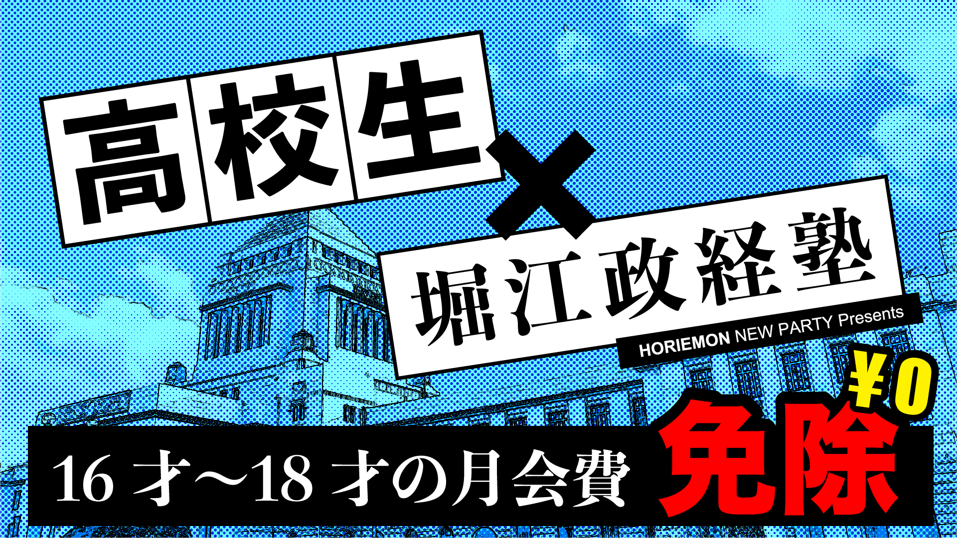「はじめての選挙」に挑戦する高校生(16才〜18才の社会人含む)が、主体的に選挙制度に参加してほしい。そこで、高校生の皆さんは、堀江政経塾へ無料でオブザーバー参加できます。